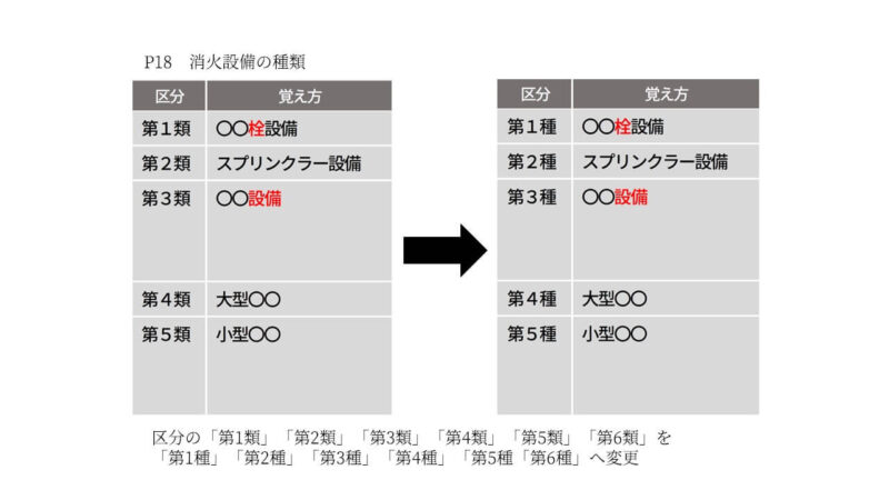 P18 消火設備の種類 において誤りがあったため下記のとおり修正をおこないました。